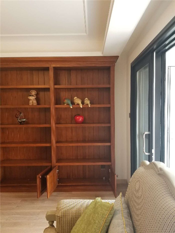 时代不同,现在的90后基本都不喜欢看电视。业主的儿子也一样,而已他喜欢看书,有多多书,所以要求在客厅设计了一面大大的书柜。
